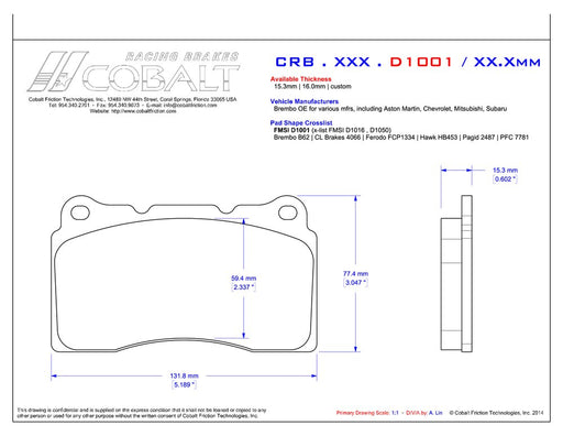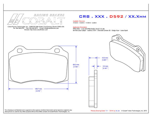 D592 - 15.0mm Compatible Vehicles Include:2004-2007 Cadillac CTS-V Rear Brake Pads2010-2015 Camaro SS Rear Brake Pads2012-2015 Camaro ZL1 Rear Brak...