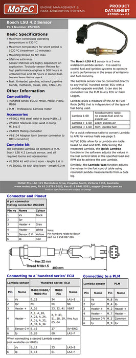 A Lambda sensor is designed as a consumable item which means like a spark plug, it wears out with use. Typically you may notice the sensor begin to slow down in its response to changes in lambda when it becomes worn out. This normally occurs in about 500 hours on unleaded type fuels but is reduced to 50 hours for lead. Like Spark Plugs, the sensor can be fouled in a matter of minutes with improper air fuel ratios and the sensor can crack if it is over torqued or dropped. For this reason, there is no warranty on Lambda Sensors.